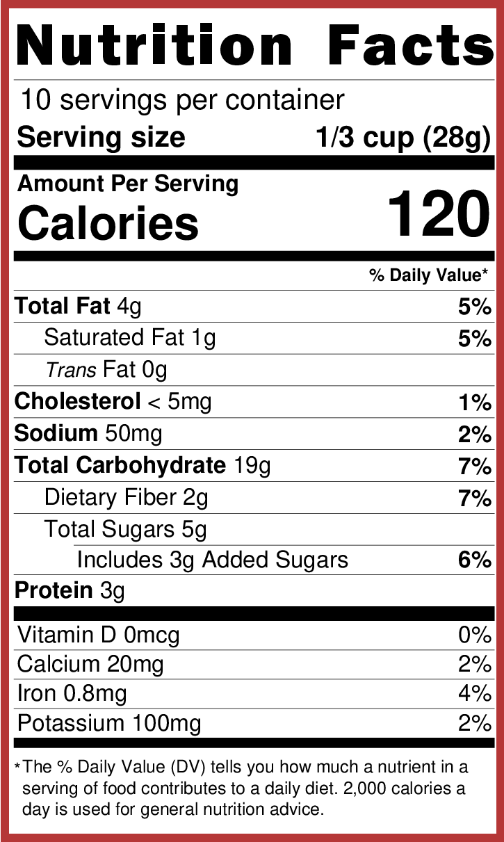 May contain or be made using equipment that has processed milk, eggs, wheat, soy, or tree nuts.